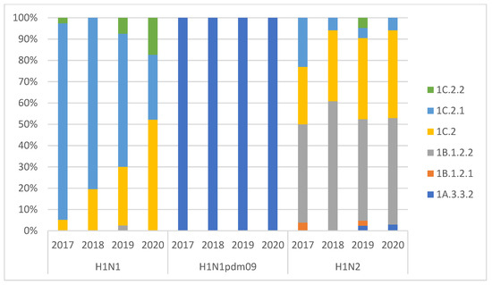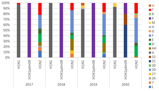 3.1. swIAV Subtypes Circulation over the Four Years (2017–2020)