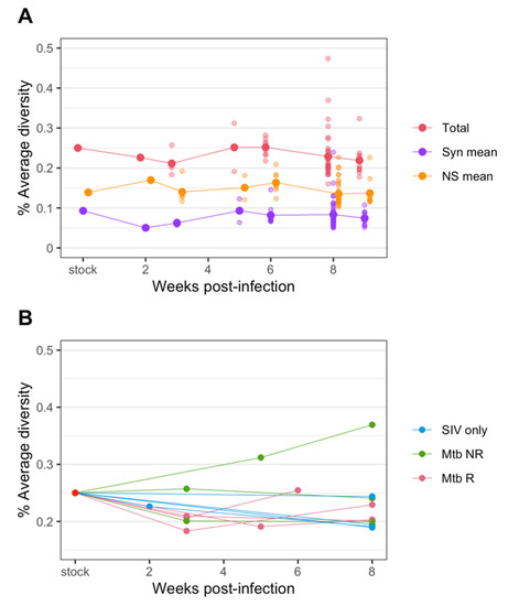 3.3. SIV Diversity Mostly Stable over 6–9 Weeks