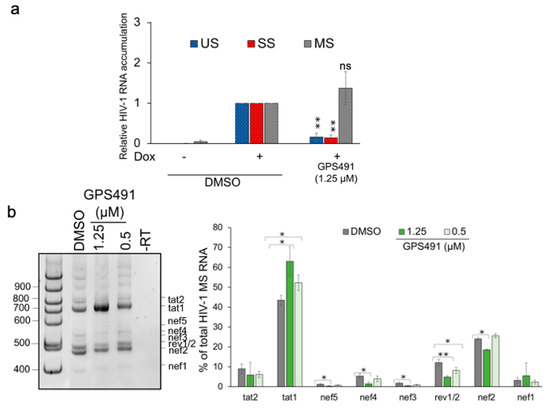 3.1. GPS491 Inhibits HIV-1 Replication by Disrupting Viral RNA Accumulation