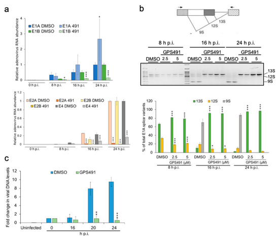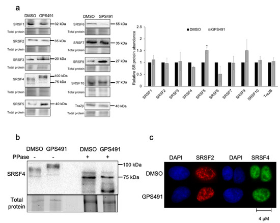 3.3. GPS491 Alters Host SR Protein Abundance, Modification, and Function