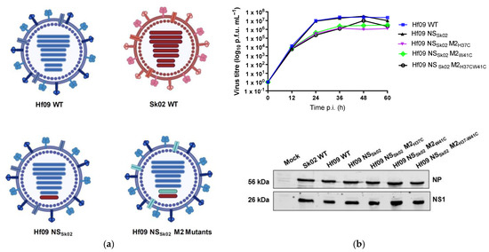 To generate Hf09 NSSk02 M2 mutant viruses namely, Hf09 NSSk02 M2H37C, Hf09 NSSk02 M2W41C, and Hf09 NSSk02 M2H37CW41C, The NS segment of Hf09 was replaced by the NS segment of Sk02 in the eight-plasmid reverse genetic system, as described above.
