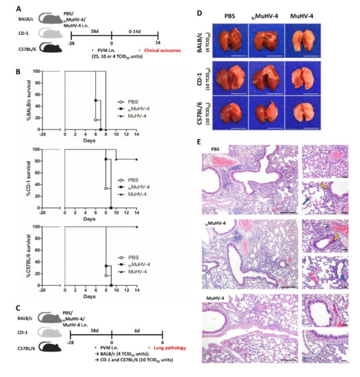 3.3. Muhv-4 Priming Impact The PVM Recovery in A Murine Strain-Dependent Manner and Reduce PVM-Induced Lung Pro-Inflammatory Cyto/Chemokine Contents