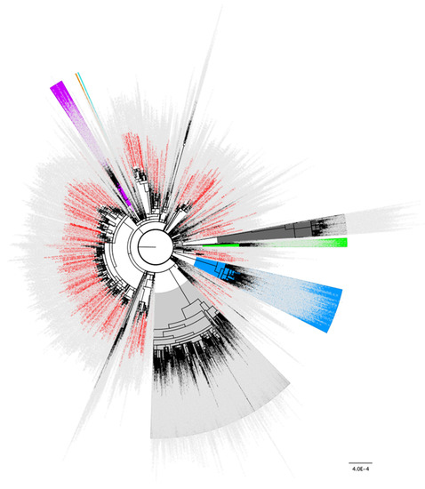 2.6. Phylogenetic Analysis of Select SARS-CoV-2 Genomes