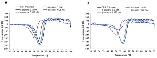 3.2. AGR Extract, α-Asarone, and β-Asarone Inhibit the Binding of HuNV P Domain to a Receptor