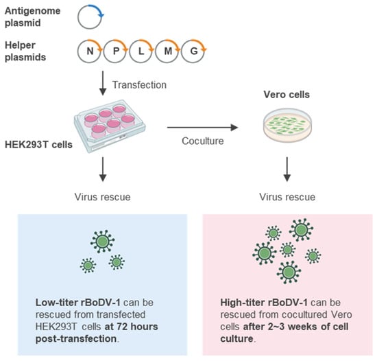 - Komatsu, Y.; Tomonaga, K. Reverse genetics approaches of Borna disease virus: Applications in development of viral vectors and preventive vaccines. Curr. Opin. Virol. 2020, 44, 42–48. [Google Scholar] [CrossRef] [PubMed]