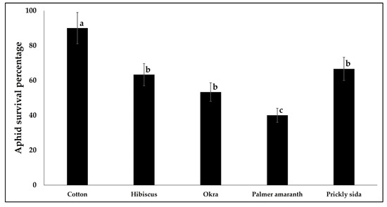 - Michelotto, M.D.; Busoli, A.C. Biology of Cotton Aphid on Plants Infected by Cotton Vein Mosaic Virus. Bragantia 2009, 68, 1017–1024. [Google Scholar] [CrossRef]