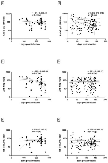 - Bonfante, F.; Costenaro, P.; Cantarutti, A.; Di Chiara, C.; Bortolami, A.; Petrara, M.R.; Carmona, F.; Pagliari, M.; Cosma, C.; Cozzani, S.; et al. Mild SARS-CoV-2 Infections and Neutralizing Antibody Titers. Pediatrics 2021, 148, e2021052173. [Google Scholar] [CrossRef]