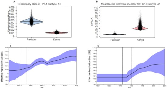 3.2. Date of Origin and Evolutionary Dynamics of HIV-1 Sub-Subtype A1 in Pakistan