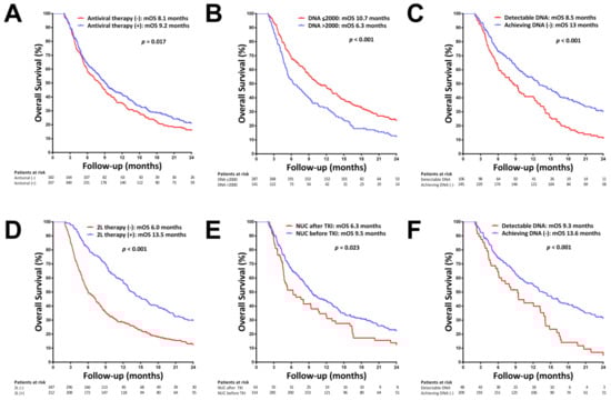 Several second-line treatment options have become available for advanced-stage HCC in the past few years, including regorafenib, cabozantinib, ramucirumab, and immune checkpoint inhibitors (ICIs) []. Nevertheless, patients with deteriorated liver function at the time of disease progression may have less chance to receive second-line HCC treatment [,]. The OS in patients with advanced HCC gradually improved in the era of multi-line sequential therapy. The application of antiviral therapy and its impact on survival for patients with HBV-related HCC needs to be reassessed. The aim of this study was to evaluate the application and impact of antiviral therapy on survival for patients with HBV-related HCC receiving TKI therapy.