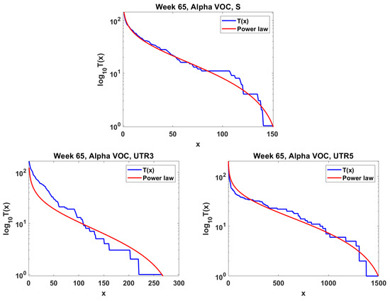where . This is due to the advantageous mutations that produce the founders of the type 1 population. As seen in the Results section, the mid-range frequency SARS-CoV-2 data conform to the power curve, though with , which corresponds to