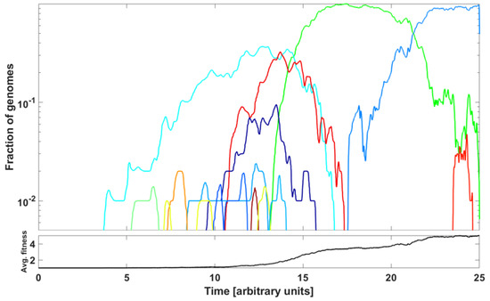 - Rouzine, I.M.; Wakeley, J.; Coffin, J.M. The solitary wave of asexual evolution. Proc. Natl. Acad. Sci. USA 2003, 100, 587–592. [Google Scholar] [CrossRef]