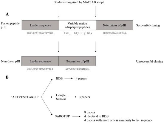 As NGS analysis allows us to exclude the AETVESCLAKSH sequence as an artifact of the phage display library construction, a literature search was conducted to investigate if the AETVESCLAKSH sequence had been reported as a target-binding peptide in the literature. The literature search was performed using Biopanning Data Bank (BDB) [