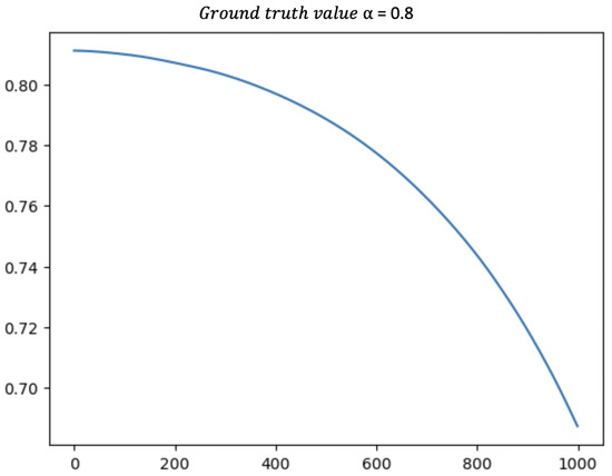We also present the results from the standard PINN, i.e., directly using the form from Equation (11) for the PINN loss. Testing was performed under the same conditions as for the modified PINN, with the results presented in Figure 4 and Figure 5. We note with an initial value of as , as we did in the modified PINN, decreased directly to during the training, as seen in the first graph. Moreover, the fitted values for C and D were quite poor, as seen in Figure 5 despite these being known quantities. Without modification, the PINN gave results which were not merely poor, or took substantial time to converge but the results also consistently converged to entirely incorrect values. Our modification was crucial towards recovering accurate estimates of I, , and .