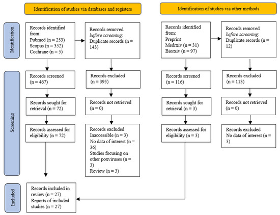 APA StyleSudarmaji, N., Kifli, N., Hermansyah, A., Yeoh, S. F., Goh, B.-H., & Ming, L. C. (2022). Prevention and Treatment of Monkeypox: A Systematic Review of Preclinical Studies. Viruses, 14(11), 2496. https://doi.org/10.3390/v14112496