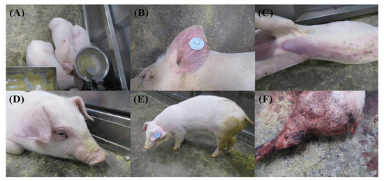 A humane endpoint was determined when pigs displayed severe clinical signs of fever, anorexia, recumbency, respiratory difficulty, and vomiting for more than two consecutive days, or when the clinical scoring system used in this study exceeded 18 points, as was applied in a previous study [