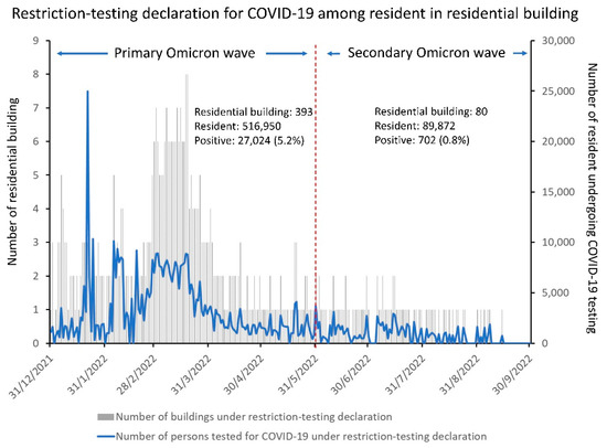 COVID-19 testing in the community under restriction-testing declaration for residents in residential buildings during the fifth wave (primary and secondary Omicron waves) of COVID-19 in Hong Kong.