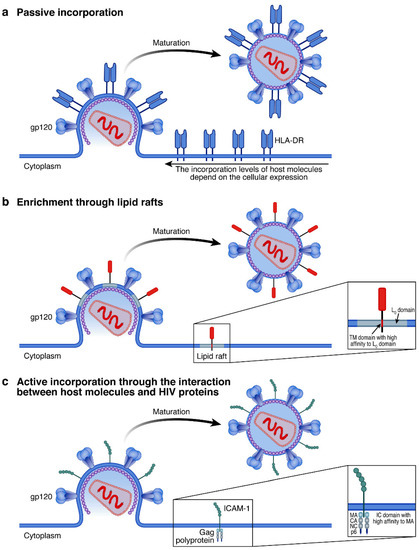 - CANTIN, R.; FORTIN, J.-F.; TREMBLAY, M. The amount of host HLA-DR proteins acquired by HIV-1 is virus strain-and cell type-specific. Virology 1996, 218, 372–381. [Google Scholar] [CrossRef]