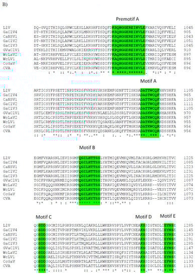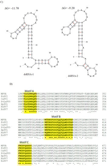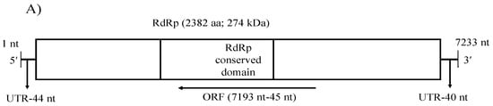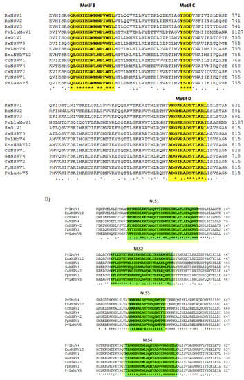 - Bruenn, J.A. A structural and primary sequence comparison of the viral RNA-dependent RNA polymerases. Nucleic Acids Res. 2003, 31, 1821–1829. [Google Scholar] [CrossRef]
