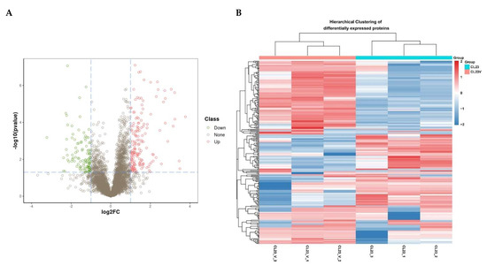 To digest the extracted proteins, 2.5 μg trypsin was added to each 100 μg protein sample to achieve a 40:1 ratio of protein:enzyme, and the solution was maintained at 37 °C for 4 h for enzymatic hydrolysis. The enzymatically hydrolyzed peptides were desalted on the Strata-X column (Phenomenex, Torrance, CA, USA) and vacuum dried. The peptide fragments were separated and dried using the LC-20AD HPLC system (Shimadzu, Kyoto, Japan), and data-dependent acquisition (DDA) library building and DIA quantitative detection analyses were performed using Nano-LC-MS/MS (Q Exactive HF-X Mass Spectrometer (ThermoFisher Scientific, Waltham, MA, USA)). Mass spectrometry and protein identification services were provided by BGI (China). The mass spectroscopic proteomic data are shown in Table S1.