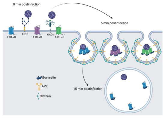 - Assetta, B.; Morris-Love, J.; Gee, G.V.; Atkinson, A.L.; O’Hara, B.A.; Maginnis, M.S.; Haley, S.A.; Atwood, W.J. Genetic and Functional Dissection of the Role of Individual 5-HT2 Receptors as Entry Receptors for JC Polyomavirus. Cell Rep. 2019, 27, 1960–1966.e6. [Google Scholar] [CrossRef] [PubMed]