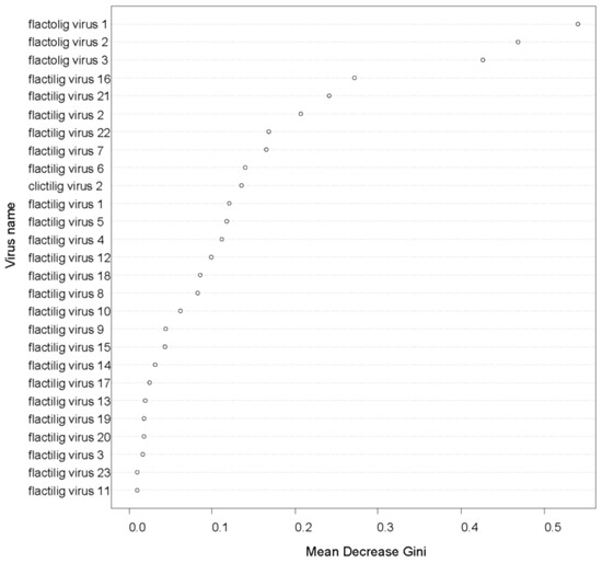 Chicago/Turabian StyleRichard, Jordan C., Eric M. Leis, Christopher D. Dunn, Cleyo Harris, Rose E. Agbalog, Lewis J. Campbell, Susan Knowles, Diane L. Waller, Joel G. Putnam, and Tony L. Goldberg. 2022. "Freshwater Mussels Show Elevated Viral Richness and Intensity during a Mortality Event" Viruses 14, no. 12: 2603. https://doi.org/10.3390/v14122603