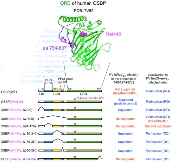 The following supporting information can be downloaded at: https://www.mdpi.com/article/10.3390/v14122672/s1. Figure S1: Western blot analysis of the OSBP variants. Figure S2: Subcellular localization of the OSBP variants.