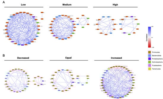 2.5. Analyses of Differentially Present Genera and Correlation Network Construction