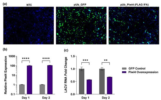 3.3. Overexpression of CqPiwi4 Reduces LACV Replication