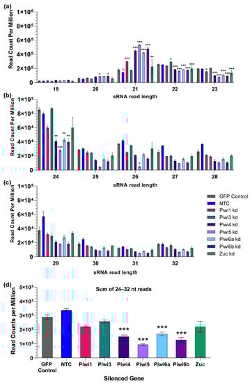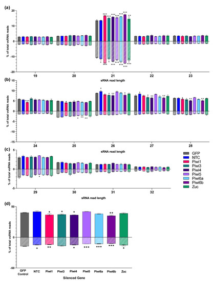 3.5. Piwi Silencing Affects sRNA Populations in Cx. quinquefasciatus Cells