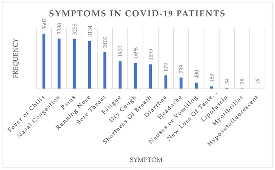 The results in Figure 3 show that fever, nasal congestion, pains, a running nose, and sore throat are among the most common COVID-19 symptoms. Next, we show the most occurring named entities (occurrence > 70%) under the prominent entity types (drugs, vaccines, treatments) and show the results in Table 7.