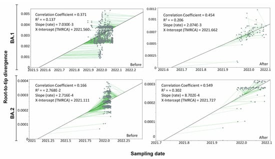 2.3. Root-to-Tip Regression Analysis to Assess the Temporal Signals