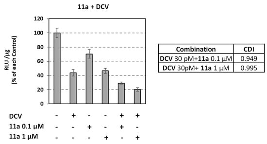 The Huh5-2 stable cell line, containing the HCV subgenomic reporter replicon of GT 1b I389luc-ubi-neo/NS3-3′/Con1/5.1 (strain Con1), has been previously described [52] and was kindly provided by Prof. R. Bartenschlager (Heidelberg University, Germany). Huh7.5-3a and Huh7.5-4a cell lines have been previously reported [53] and harbor the subgenomic reporter replicons of HCV GT 3a (S52) S52-SG(Feo)(AII) and GT 4a (ED43) ED43-SG(Feo)(VYG), respectively, that were kindly provided by Prof. C.M. Rice (The Rockefeller University, New York, NY, USA) [54]. The subgenomic reporter replicon DENV2 16,681 pD2-hRUPac (kindly provided by Prof. C.M. Rice) has been previously described [55] and was used to construct the stable cell line Huh7-D2 [53]. Cells were cultured in Dulbecco’s modified minimal essential medium containing high glucose (25 mM) (Invitrogen), supplemented with 2 mM L-glutamine, 0.1 mM non-essential amino acids, 100 U/mL penicillin, 100 µg/mL streptomycin, and 10% (v/v) fetal calf serum (referred to as complete DMEM). Complete DMEM was supplemented with G418 at 500 μg/mL for Huh5-2, 750 μg/mL for Huh7.5-3a, and 350 μg/mL for Huh7.5-4a, or puromycin at 0.5 μg/mL for Huh7-D2.