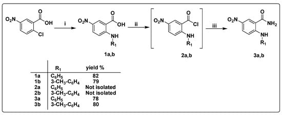 • General procedure for the synthesis of 5-nitro-2-(substituted phenyla-mino)benzamide derivatives (3a,b).