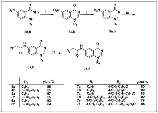 • General procedure for the synthesis of 2-substituted phenoxy-N-(4-oxo-1-(substituted phenyl)-1,4-dihydro quinazolin-6-yl)acetamide (7a–f).