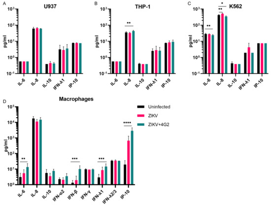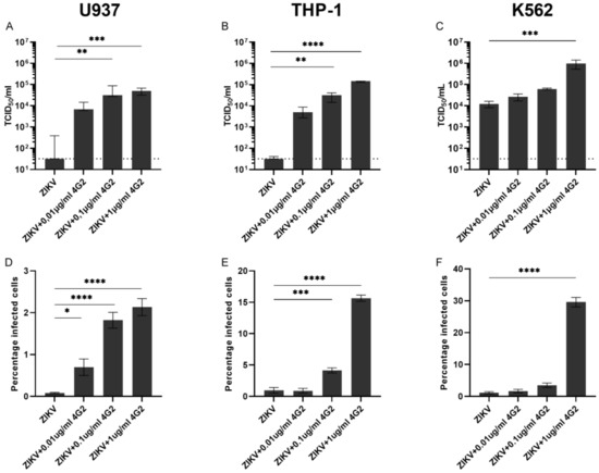3.2. ADE of ZIKV Infection in Myeloid Cell Lines and Primary Myeloid Cells