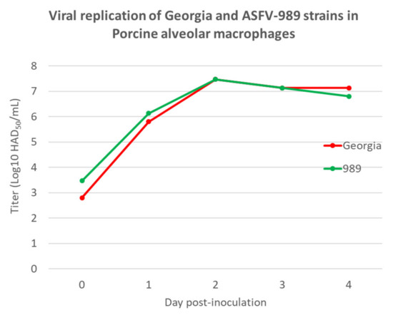 3.1.2. In vitro Replication of the ASFV-989 and Georgia Strains