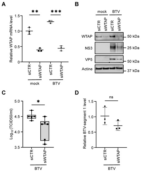 3.6. WTAP Is Essential for BTV Replication