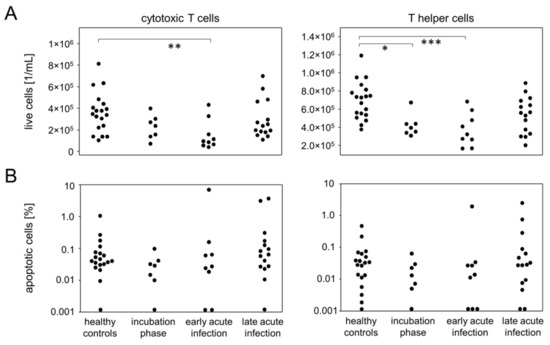 3.5. Incubation and Early Acute Infection Are Characterized by T Lymphopenia Unrelated to Apoptosis