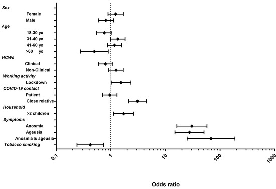 - De Oliveira, M.S.; Lobo, R.D.; Detta, F.P.; Vieira-Junior, J.M.; de Souza Castro, T.L.; Zambelli, D.B.; Cardoso, L.F.; Borges, I.C.; Tozetto-Mendoza, T.R.; Costa, S.F.; et al. SARS-CoV-2 Seroprevalence and Risk Factors among Health Care Workers: Estimating the Risk of COVID-19 Dedicated Units. Am. J. Infect. Control 2021, 49, 1197–1199. [Google Scholar] [CrossRef]