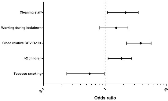 - Cruz-Arenas, E.; Cabrera-Ruiz, E.; Laguna-Barcenas, S.; Colin-Castro, C.A.; Chavez, T.; Franco-Cendejas, R.; Ibarra, C.; Perez-Orive, J. Serological Prevalence of SARS-CoV-2 Infection and Associated Factors in Healthcare Workers in a “Non-COVID” Hospital in Mexico City. PLoS ONE 2021, 16, e0255916. [Google Scholar] [CrossRef] [PubMed]