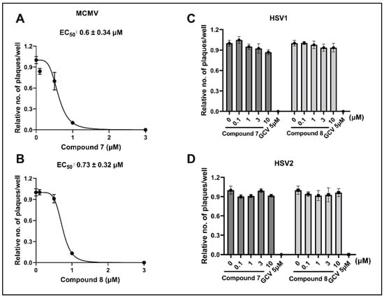 3.4. NCGC2955 Analogs Inhibit Mouse CMV (MCMV) but Not Herpes Simplex Virus 1 or 2 (HSV1 or 2)