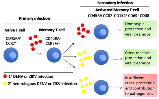 - Ngono, A.E.; Shresta, S. Cross-Reactive T Cell Immunity to Dengue and Zika Viruses: New Insights into Vaccine Development. Front. Immunol. 2019, 10, 1316. [Google Scholar] [CrossRef] [PubMed]
