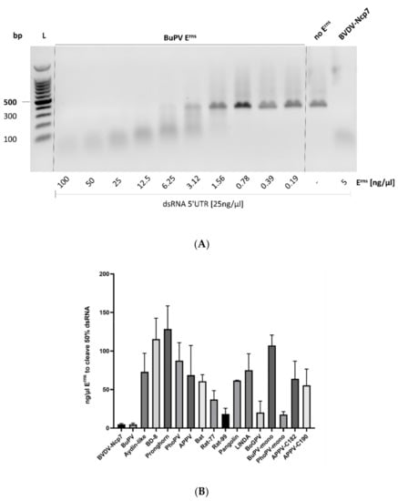 - Lussi, C.; Sauter, K.-S.; Schweizer, M. Homodimerisation-independent cleavage of dsRNA by a pestiviral nicking endoribonuclease. Sci. Rep. 2018, 8, 8226. [Google Scholar] [CrossRef] [Green Version]