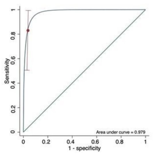 In ROC analysis, (n = 87) the troponin T predicted maternal death (AUC 0.833, CI 0.500–1.000). At a 10% false-positive rate, a cutoff point of 7 ng/mL predicted maternal death with a sensibility of 83.3% (Figure 2), which means that troponin T had an excellent predictive value for maternal death in the pregnant population with PCR positive for SARS-CoV-2 who presented symptomatically to the emergency department. This adequate balance between sensitivity and specificity for the analyzed outcomes motivated us to explore its predictive performance.