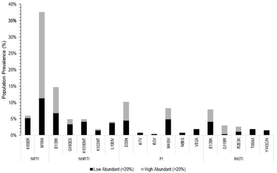 - Mbunkah, H.A.; Bertagnolio, S.; Hamers, R.L.; Hunt, G.; Inzaule, S.; De Wit, T.F.R.; Paredes, R.; Parkin, N.T.; Jordan, M.R.; Metzner, K.J.; et al. Low-Abundance Drug-Resistant HIV-1 Variants in Antiretroviral Drug-Naive Individuals: A Systematic Review of Detection Methods, Prevalence, and Clinical Impact. J. Infect. Dis. 2020, 221, 1584–1597. [Google Scholar] [CrossRef] [PubMed]