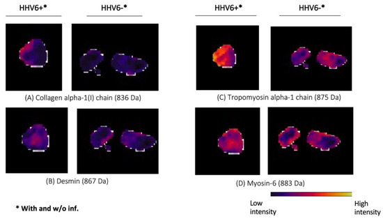 The following supporting information can be downloaded at: https://www.mdpi.com/article/10.3390/v14020299/s1, Figure S1: Endomyocardial biopsies of Herpesvirus 6-positive patients with and without myocarditis display differential intensity distributions in selected proteins; File S1: MALDI imaging mass spectrometry detailed methodology.