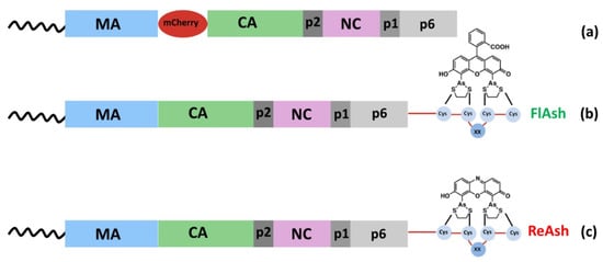 - Rudner, L.; Nydegger, S.; Coren, L.V.; Nagashima, K.; Thali, M.; Ott, D.E. Dynamic Fluorescent Imaging of Human Immunodeficiency Virus Type 1 Gag in Live Cells by Biarsenical Labeling. J. Virol. 2005, 79, 4055–4065. [Google Scholar] [CrossRef]
