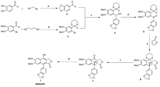 - Kamal, A.; Daneshtalab, M.; Atchison, K.; Micetich, R.G. Synthesis of ring-a-opened isopicropodophyllins as potential DNA topoisomerase II inhibitors. Bioorganic Med. Chem. Lett. 1994, 4, 1513–1518. [Google Scholar] [CrossRef]
