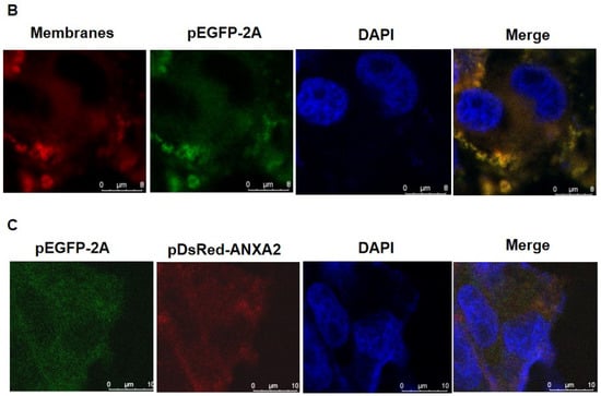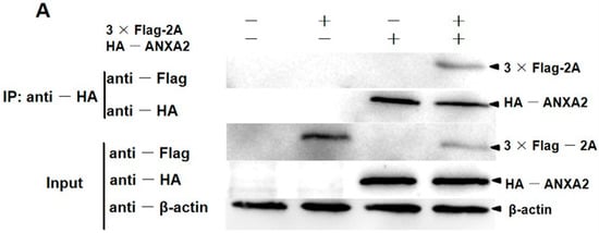 3.3. 2A Protein Interacts and Colocalizes with Annexin A2