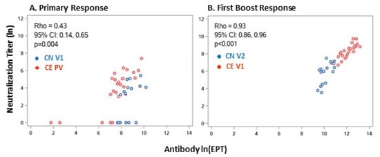 3.4. Relationship between Serum Antibody Levels and Virus Neutralization